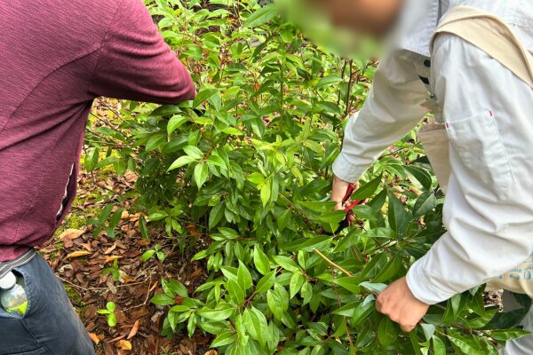 東大寺の職員さんの指示のもと、はさみを使って丁寧に枝を切り揃え、足元の安全や見た目を整える作業を進めました。