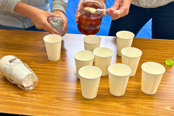 瓶からシロップを注ぐ人、少しの水で溶く人、炭酸で割る人など、こちらも分担しながら準備を進めました。