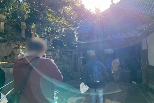 坂道を歩き、階段を登って参籠所へ。休憩しながら、簡単に自己紹介をします。