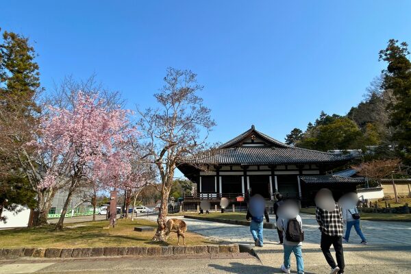 桜も咲き始めており、東大寺周辺には多くの観光客が訪れ、にぎやかな雰囲気に包まれていました。